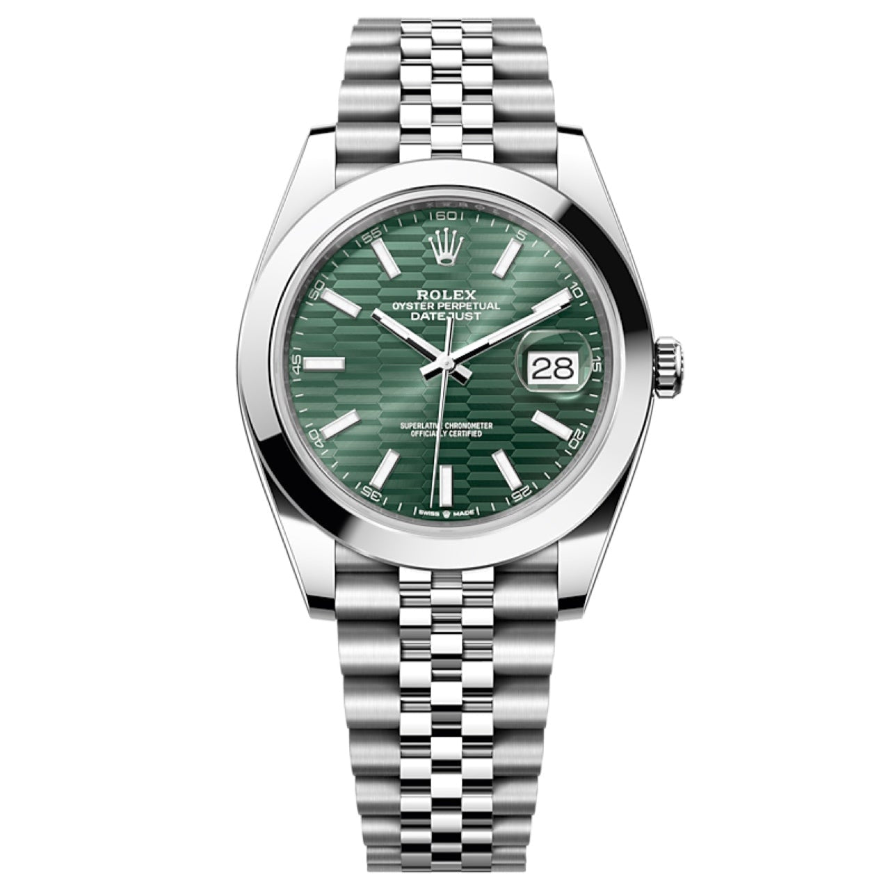 2025 Brand New Rolex - 126300-0022 Datejust 41 Stainless Steel Smooth / Jubilee / Green - Fluted